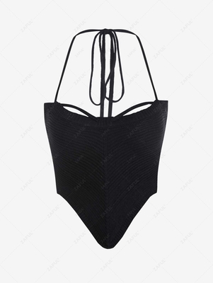 Zaful Add a little attitude to your weekend wardrobe with this top which features a stretchy knitted material with a chic scarf hem & a self-tie halter collarline. Style it with high-waisted jeans & slip-on heels to complete this feminine look. Style: Sexy Shirt Length: Regular Collar: Halter C