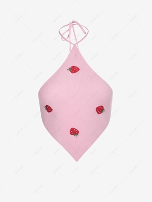 Zaful Style: Sexy Shirt Length: Regular Collar: Halter Collar Material: Polyacrylic Material Stretch: Slight Stretch Thickness: Standard Pattern Type: Strawberry Decoration: Embroidery Seasons: Fall, Spring, Summer Weight: 0.0650kg Package: 1 x Top