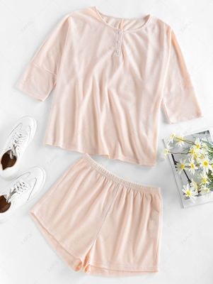 Zaful We're loving this co-ord set for loungewear or daily life. Featuring a soft knitted fabric with a quarter button design & drop shoulders, we love this teamed with slippers for a cozy night in. Occasion: Casual , Daily Style: Fashion Fit Type: Regular Collar-line: Round Collar Sleeves Length