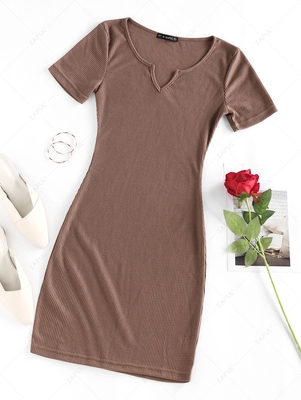 Zaful This tight-fitting dress is sure to elevate any look. Featuring a stretchy textured material with a V notched detailing and a mini length. Style this with sneakers or backless loafers to complete the look. Style: Basic Occasion: Daily, Going Out Material: Polyester Silhouette: Bodycon Dresses