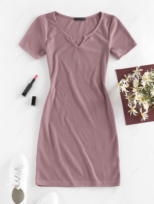 Zaful This tight-fitting dress is sure to elevate any look. Featuring a stretchy textured material with a V notched detailing and a mini length. Style this with sneakers or backless loafers to complete the look. Style: Basic Occasion: Daily, Going Out Material: Polyester Silhouette: Bodycon Dresses