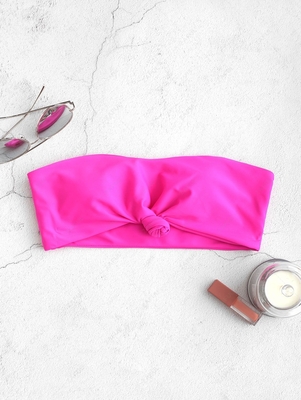 ZAFUL Knot Hem Bandeau Bikini Top M Hot Pink