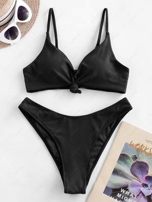 Zaful Ribbed for texture and shaping, the two-piece comprises a pair of high-leg briefs and a coordinating bikini top with a shape-cinching knot at the front. The only way you could improve on it? By adding some tortoiseshell sunnies. Style: Sexy Swimwear Type: Bikini Bikini Type: High Cut Bikini G
