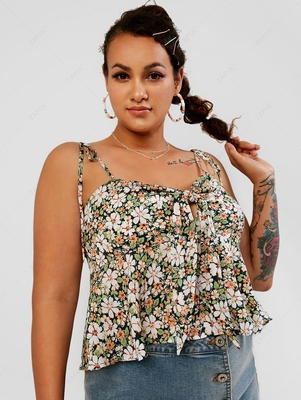Zaful A sweet statement for sunny days, this plus-size breezy cami top features a charming floral print, playful ties at the shoulders, & collarline. Pair it with faded denim & sneakers for easy summer weekends. Style: Cute Shirt Length: Regular Collar: Spaghetti Strap