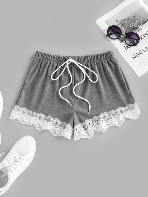 Zaful Give your loungewear a chic update with the bicolor shorts. Featuring a flower-patterned lace hem, a contrast bowknot decorated elastic waist, and a loose fit, the bottom pairs well with a bralette and slippers. Style: Casual Occasions: Daily, Home Material: Cotton, Polyurethane Length: Mini Ty