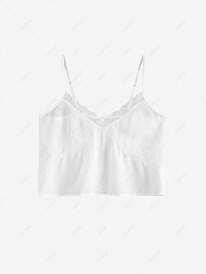 Zaful This plain camisole featuring adjustable shoulder straps has lace inserts in a crisscross pattern. Pairs well with jean shorts & fashionable slippers for a chic streetwear look. Style: Sexy Shirt Length: Regular Collar: Spaghetti Strap