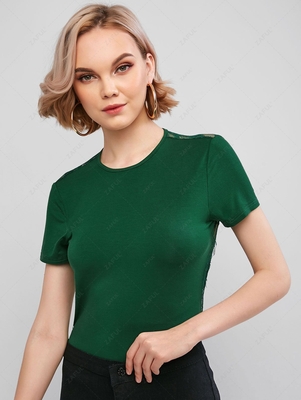 Zaful Featuring a classic round collarline, this fashionable short-sleeved bodysuit emphasizes a seductive backless design & delicate lace panel detail, in a high cut style. The buttoned closure at the gusset gives an easy fit. Style: Fashion Occasion: Daily