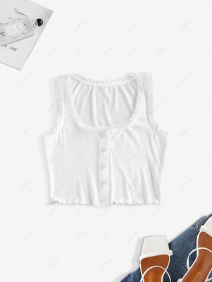 Zaful The ultimate layering piece or stylish on its own, this rib-knit crop tank features delicate laces accenting the round collar, pretty lettuce hem, & front covered buttons for a flattering, elongating look. Style: Casual Shirt Length: Short Collar: Round Collar