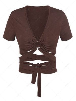 ZAFUL Lace Up O Ring Crop T Shirt Xl Deep Coffee