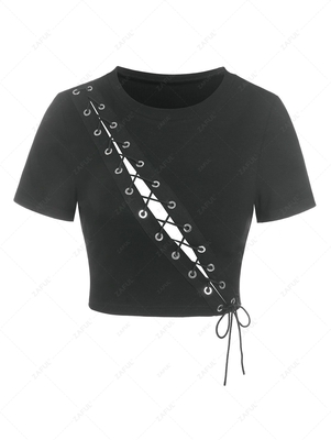 Zaful T-shirts can be sexy as well! Try this slim tee which features an inclined lace-up design and a flattering cropped length. Finish the look with high-waisted skinnies and hoop earrings. Style: Sexy Occasions: Daily Shirt Length: Crop Top Collar: Round Collar Sleeves Length: Short Fit Type: Sli