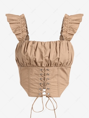 ZAFUL Lace Up Ruched Bust Top L Light Coffee