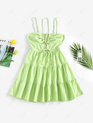 ZAFUL Lace Up Smocked Cut Out Tiered Dress M Light Green