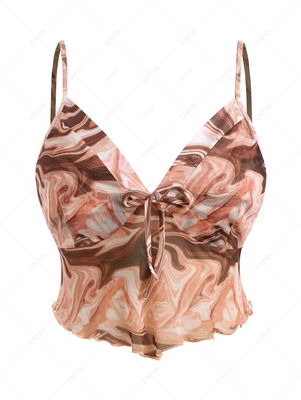 Zaful Spun from semi-sheer mesh enthused with stretch, the cami top is cloaked in a vibrant abstract pattern & trimmed with lettuce edges. Style: Fashion Shirt Length: Short Collar: Spaghetti Strap