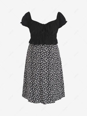 Zaful This milkmaid-style top features short puff sleeves & all-over ruching, as well as complementing midi skirt that's designed with ditsy florals. Occasion: Daily, Vacation Style: Elegant Fit Type: Regular Collar-line: Scoop Sleeve Type: Puff Sleeve Sleeves Length: Short Sleeves