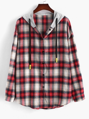 Zaful Style: Casual Occasion: Daily Collar: Hooded Fit Type: Loose Shirt Length: Longline Material: Polyester Material Stretch: No Stretch Sleeves Length: Long Sleeves Type: Button Down Shirt Pattern Type: Plaid Seasons: Fall Weight: 0.3300kg Package: 1 x Shirt