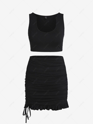 Zaful Step into spring/summer with style in this skirt set! Complete with a soft & stretchy fabric, adjustable cinched detailing, & a U-collar crop tank top, this set is perfect for your day & night. Occasion: Daily, Night Out, Party Style: Fashion Fit Type: Slim Collar-line: U Collar Sleeves L