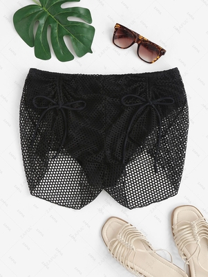 ZAFUL Plus Size Fishnet Cinched Slit Beach Shorts With Built In Briefs