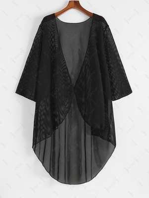 Zaful Take your summer collection to new heights with this cover-up. Featuring a sheer fishnet fabric, an open front, & a high low hem, we are obsessed. Team this with a bikini set & sandals to complete the look. Gender: For Women Collar-line: Collarless Shirt Length: Long Sleeves Length: 3/4 L