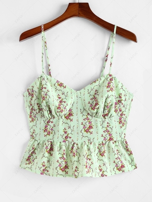 Zaful Detailed with summer-appropriate florals, this peplum top is designed with a universally flattering cupped bust and finished with a smocked back. We can just picture it with a crisp pair of jean shorts and leather sandals. Style: Cute Shirt Length: Regular Collar: Spaghetti Strap Material: Po