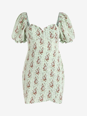 ZAFUL Plus Size Frilled Floral Puff Sleeve Tulip Hem Bustier Dress