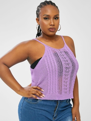 ZAFUL Plus Size Pointelle Cable Knit Cami Top