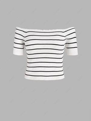 ZAFUL Plus Size Rib-knit Lettuce Trim Striped Knitwear