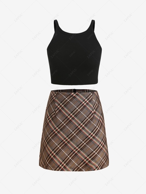 Zaful This two-piece dress features a ribbed top & a matching plaid skirt,  team this with heels & your fave accessory for a look that is sure to get you noticed. Occasion: Daily Style: Casual,  Preppy Fit Type: Regular Collar-line: Straps Sleeves Length: Sleeveless