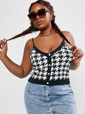 ZAFUL Plus Size Spaghetti Strap Houndstooth Knit Top