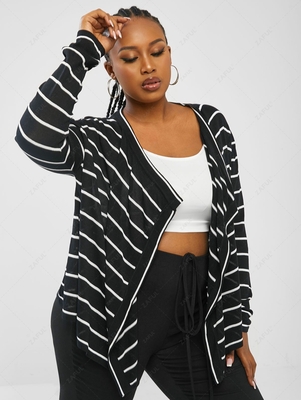 ZAFUL Plus Size Striped Draped Open Front Cardigan