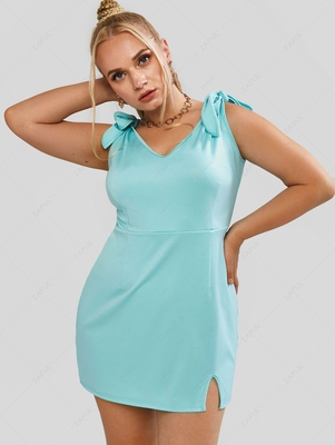 ZAFUL Plus Size Tie Shoulder Slit Glitter Dress