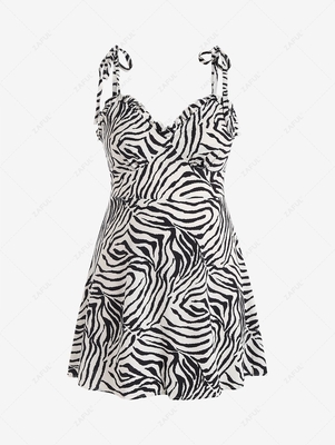 ZAFUL Plus Size Tie Shoulder Zebra Print Frilled Dress