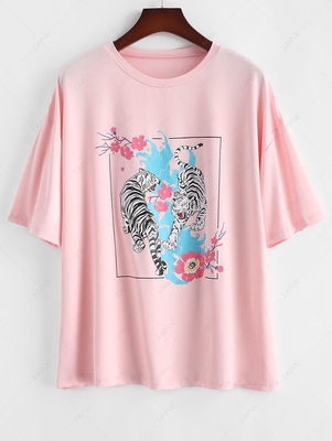 Zaful Paying homage to vintage styles gone by, this tee is printed with floral & tigers graphic across the chest below the round collarline. Wear it with jeans for the years to come.