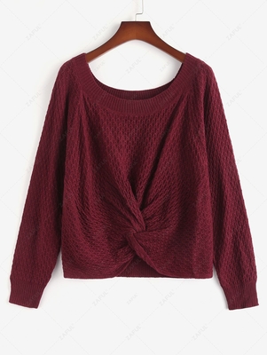 Zaful Crafted to a thick, honeycomb style with a twist knot front feature, the design offers basically as many points in the warmth department as it does in the style-focused one. Type: Pullovers Style: Fashion Fit Type: Loose Length: Regular Collar: Scoop Collar Sleeve Type: Raglan Sleeve Sleeves