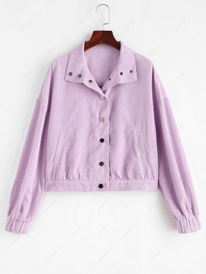 ZAFUL Pocket Corduroy Drop Shoulder Jacket L Mauve