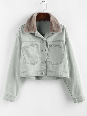 ZAFUL Pocket Faux Fur Collar Drop Shoulder Denim Jacket S Light Blue