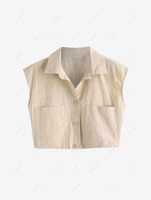 Material: Cotton Material Stretch: No Stretch Shirt Length: Crop Top Sleeves Length: Sleeveless Pattern Type: Solid Decoration: Pockets Seasons: Summer Weight: 0.1380kg Package: 1 x Shirt