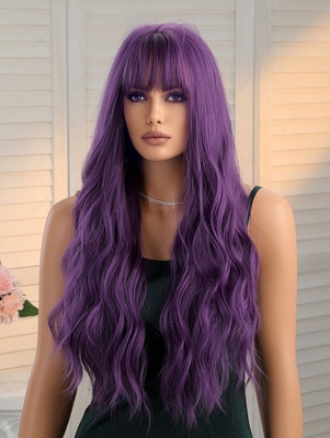 Zaful Purple Full Bangs Long Wavy Synthetic Cosplay Wig
