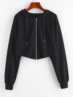 Zaful With a subtle raw, frayed hem adding a little edge to the classic zip-up style, this cropped hoodie is a must-have option for every weekend wardrobe. Style: Casual Clothing Style: Hoodie Collar-line: Hooded Sleeve Type: Drop Shoulder Length: Crop Top Sleeves Length: Full