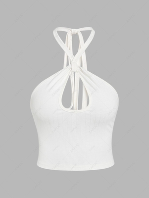 ZAFUL Ribbed Keyhole Halter Crop Tank Top L White