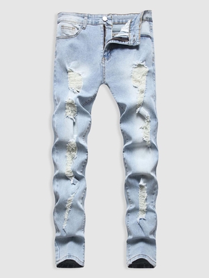 Zaful Pant Style: Ripped Jeans Pant Length: Long Pants Fit Type: Slim Waist Type: Mid Closure Type: Zipper Fly Pattern Type: Solid Color Decoration: Ripped Wash: Light