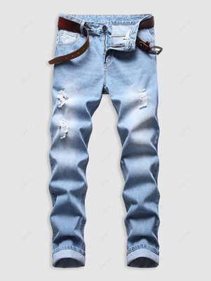 Zaful Pant Style: Ripped Jeans Pant Length: Long Pants Fit Type: Regular Fit Waist Type: Mid Closure Type: Zipper Fly Pattern Type: Solid Color Decoration: Button, Pocket Wash: Light
