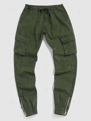 Zipper Hem Solid Color Cargo Pants 38 Deep Green