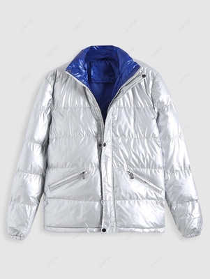 Zipper Pockets Zip Up Padded Puffer Jacket L Silver